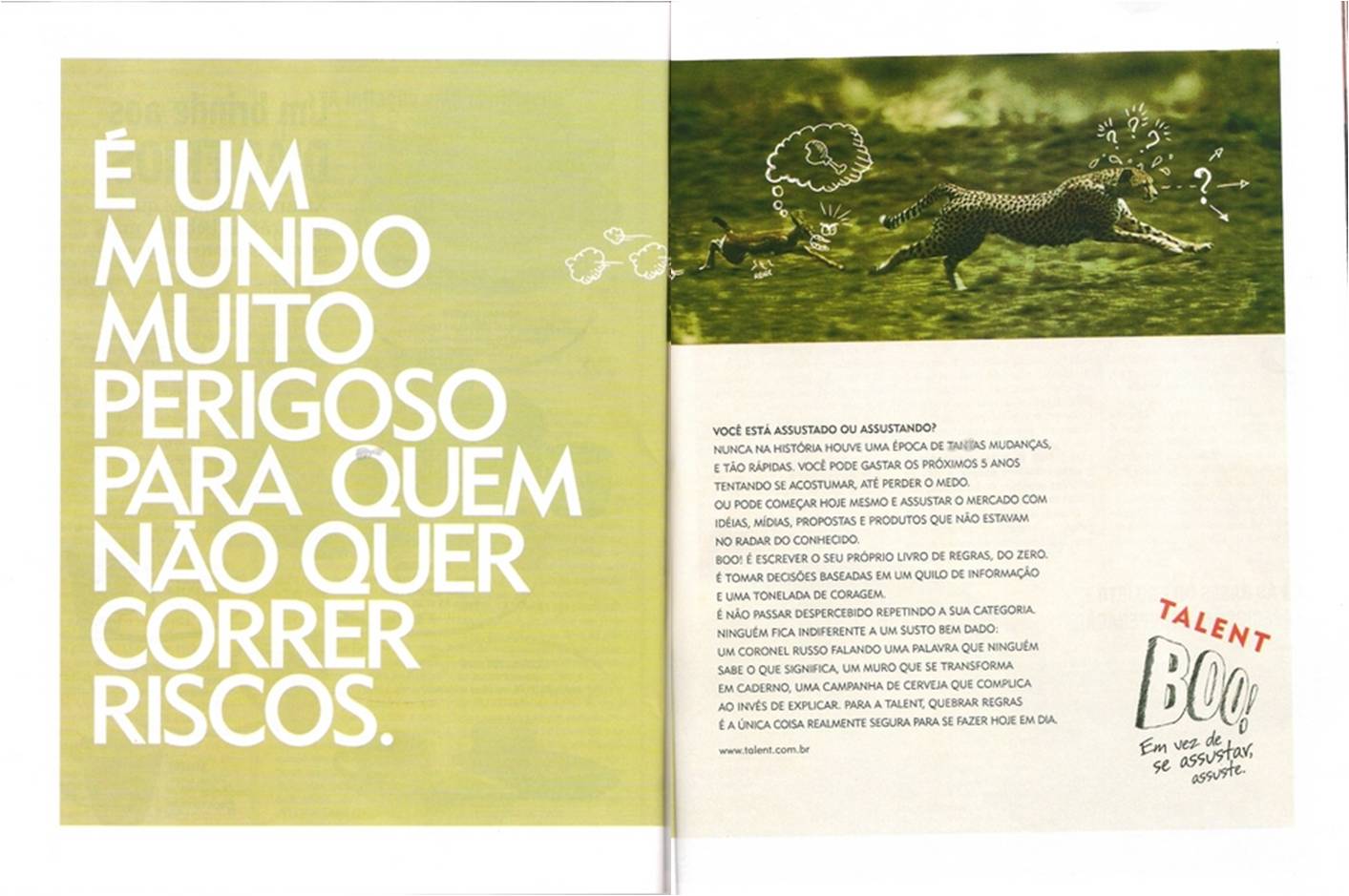 Por isso, esse produto quer longe de si a vida média, dominada por idéias feitas de família, carreira e filhos. E, por outro lado, quer dar boas-vindas à inquietação criativa crônica (que evita doenças piores no cérebro), ao frio no estômago e às rasteiras que a vida dá. Afinal, não são esses os inquilinos inevitáveis de todos os riscos? E depois, boto todos eles pra dormir. Ou pra correr. Crio cicatrizes que, como a “tatuagem” de Chico Buarque, dá coragem pra seguir viagem.
