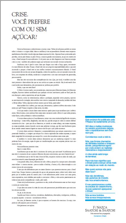 Ou melhor, defeitos, no plural. O principal deles é a curtíssima vida útil (e a ainda menor vida inútil) que obriga grandes projetos a virarem apenas sonhos; que fomenta os verbos no futuro do pretérito (gostaria, seria, faria...) e que transforma humanos em produtos, como o que este anúncio tenta vender.